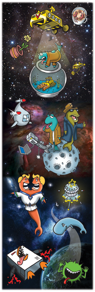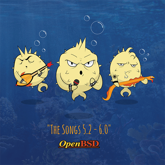 Every 6 months the OpenBSD project has the pleasure to release our software with artwork and a matching song. Theo and some other developers mutate a theme (from a classical setting, a movie, or some genre) into the fishy world of Puffy, to describe some advance, event or controversy the project went through over the previous six months. To match the art released with the historical CD sets, we joined up with some musicians we know to make at least one song.